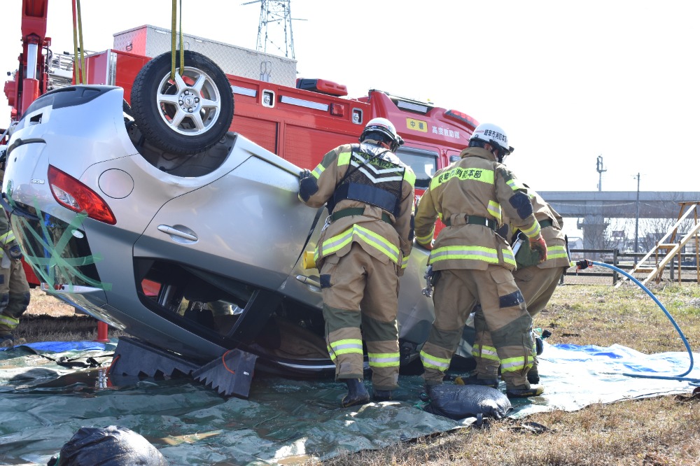 岐阜市消防本部と災害人命救助協定を締結して以来、初となる合同訓練を瑞穂消防署と共に実施しました。今回の訓練内容は、中型トラックと乗用車の事故で、トラックの車体したに乗用車が下敷きになってしまい、運転者が車内に閉じ込められ脱出出来ないという想定での救助訓練でした。一連の救助活動の流れを確認しながら、各隊員がそれぞれの役割を的確に判断・実践的な訓練となりました。遠藤署長を始め、林・山本救助隊長、そして隊員の皆様のおかげで、現場で確実に活かせる、大変意味のある時間となりました。瑞穂消防署には若い隊員の方が多く、皆様のさらなるご活躍を見守りながら、有限会社イブカは今後も力添えをしていきたいと考えています。